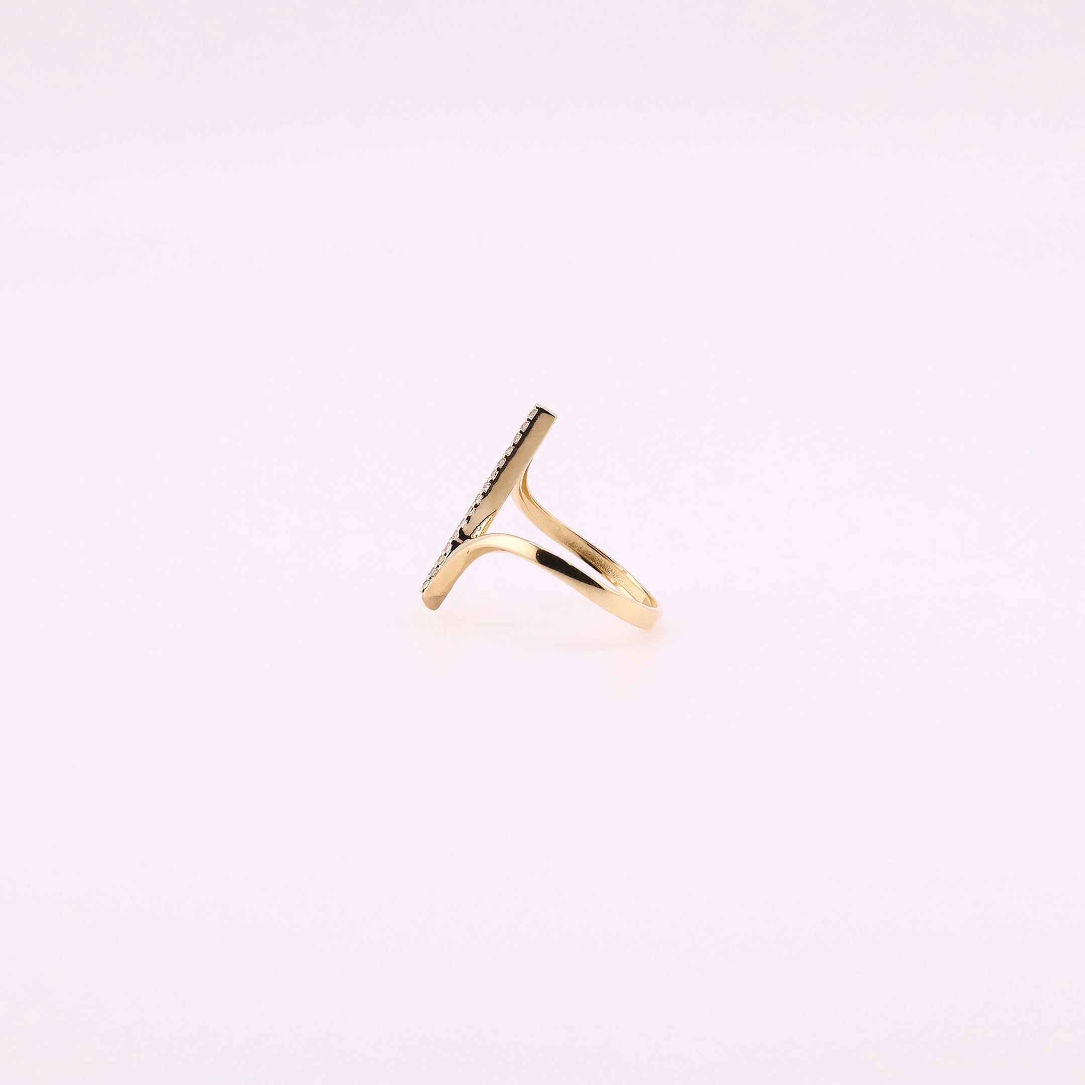 Este anillo barra en oro amarillo de 14K combina elegancia y sofisticación con un diseño moderno. Las piedras incrustadas realzan su brillo, haciendo que cada detalle destaque con delicadeza. Perfecto para quienes buscan una pieza versátil que aporte un toque de lujo y distinción en cualquier ocasión.