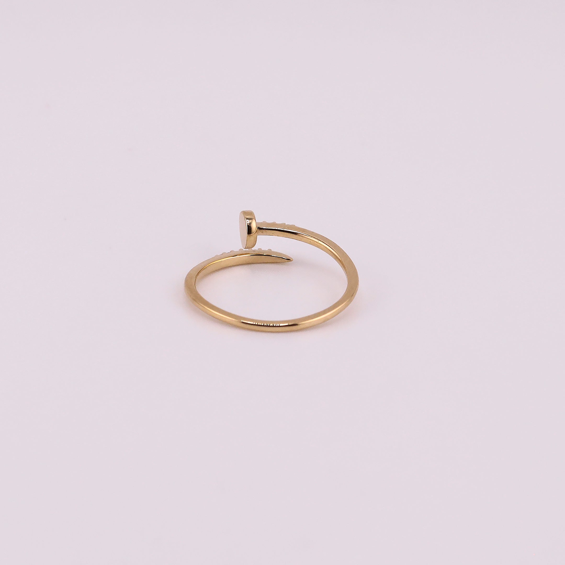 Anillo Clavo con Piedras Blancas en Oro de 14K – una joya audaz y moderna que combina fuerza y elegancia. Su diseño inspirado en un clavo envuelto con destellos blancos lo hace único y sofisticado.
