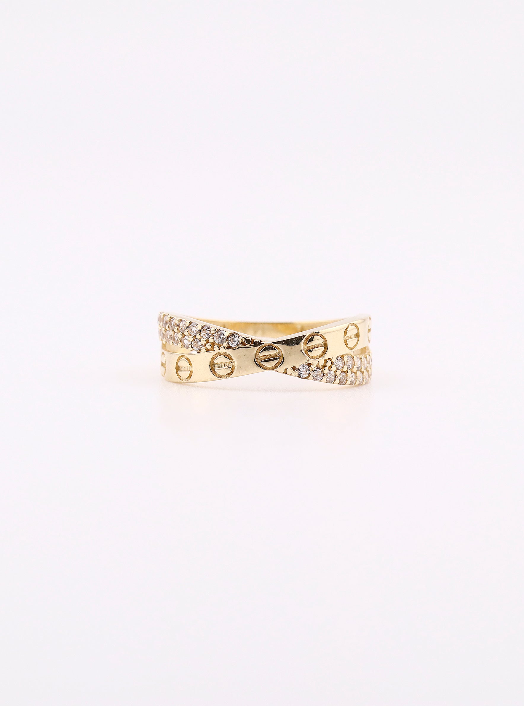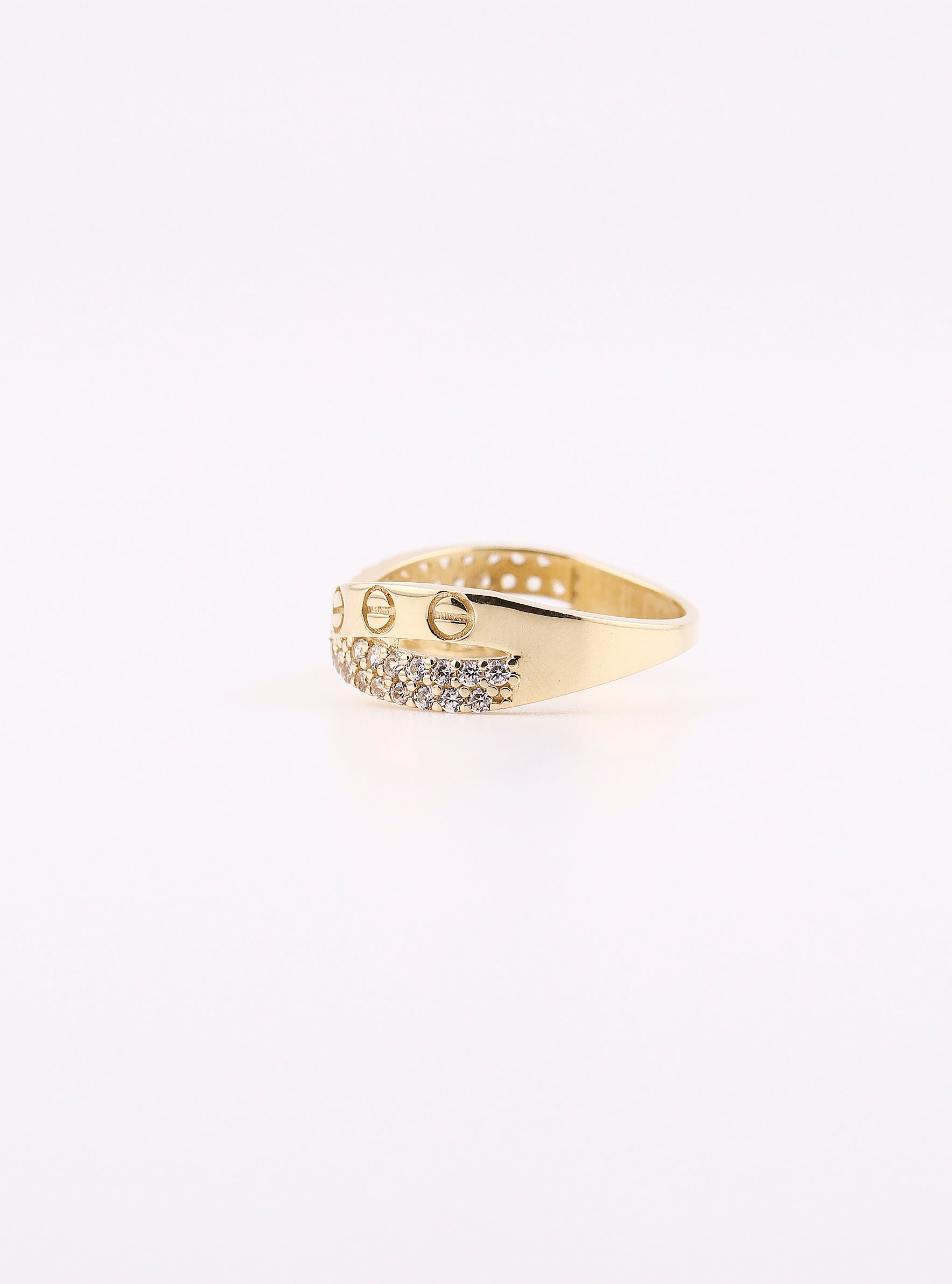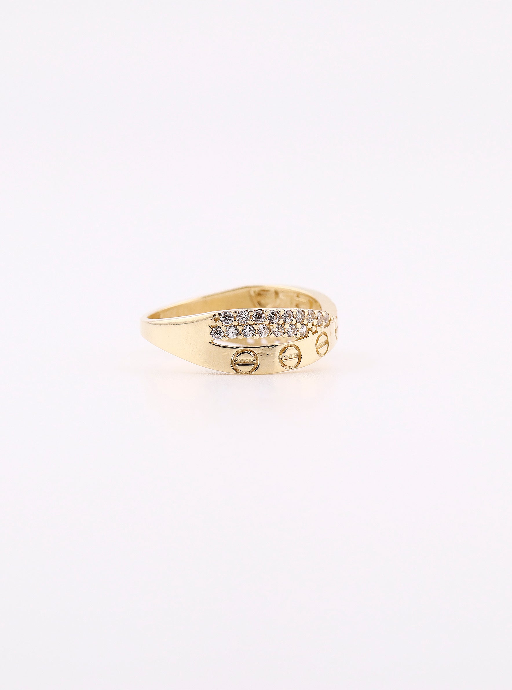 Anillo de Oro Círculo con Piedras Blancas de 14K