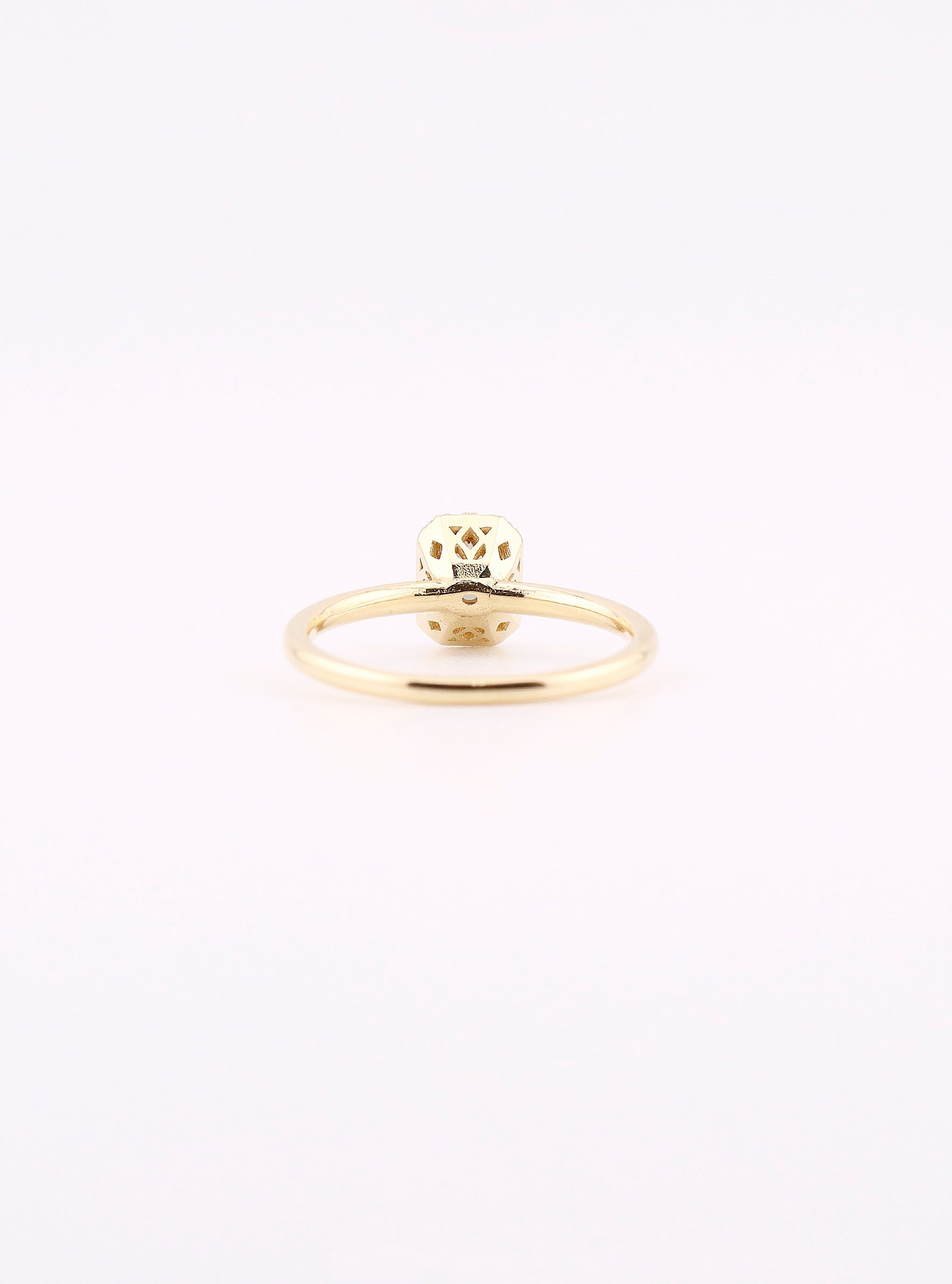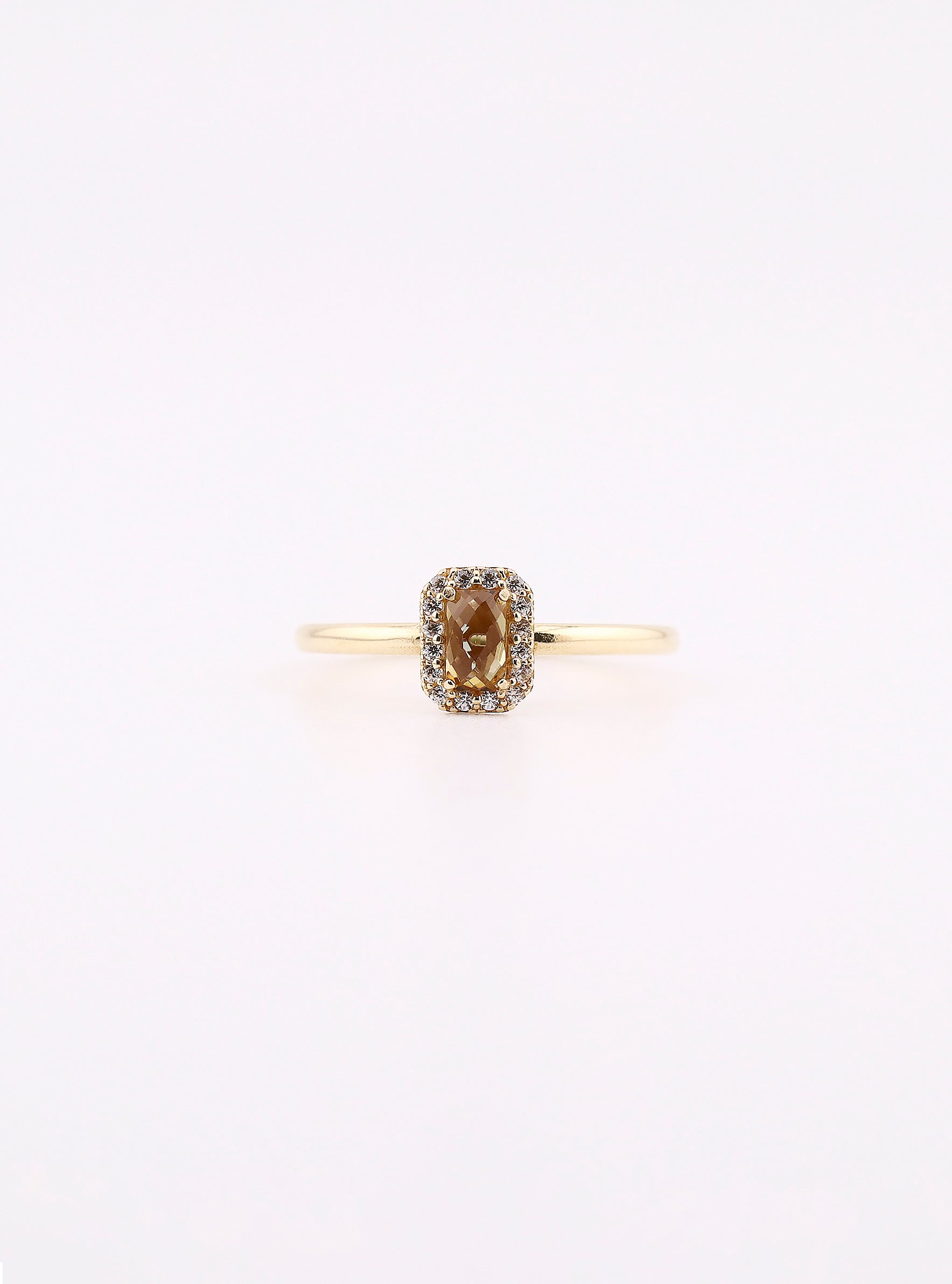 Encantador anillo de oro de 14K con una hermosa piedra verde en su centro, rodeada por delicadas piedras blancas. Este elegante anillo es perfecto para agregar un toque de color a tus conjuntos diarios o para una ocasión especial. Con un peso ligero de 2.0g, no te pesará llevarlo contigo todo el día.
