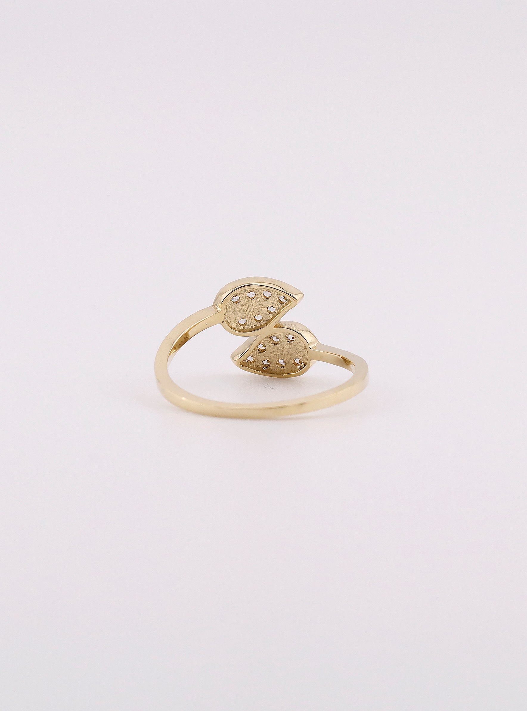 Anillo de Oro Hojas con Piedras Blancas de 14K