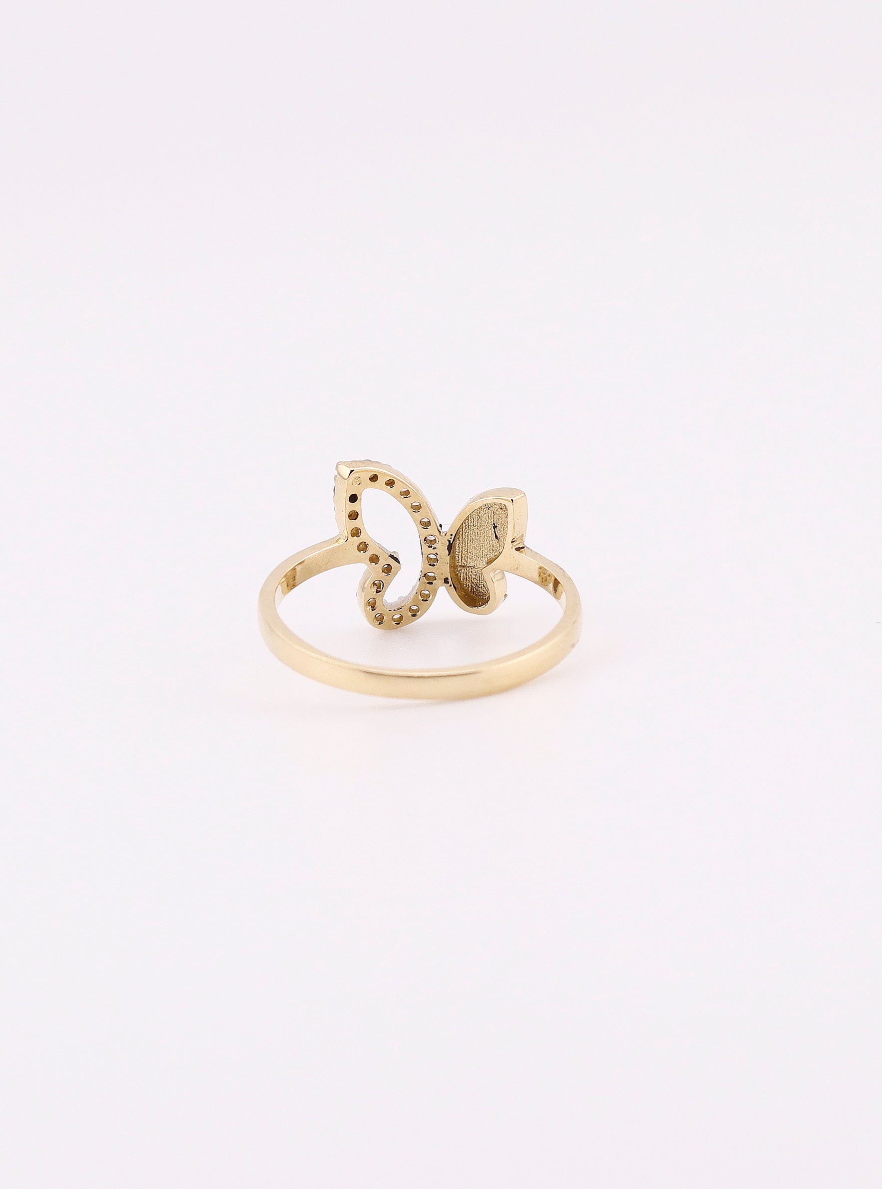 ¡Deslumbra con este anillo de oro de 14K con un hermoso diseño de mariposa! Las piedras brillantes añaden un toque de elegancia y sofisticación. Hazte notar con este accesorio único y divertido. ¡No podrás resistirte a su encanto!