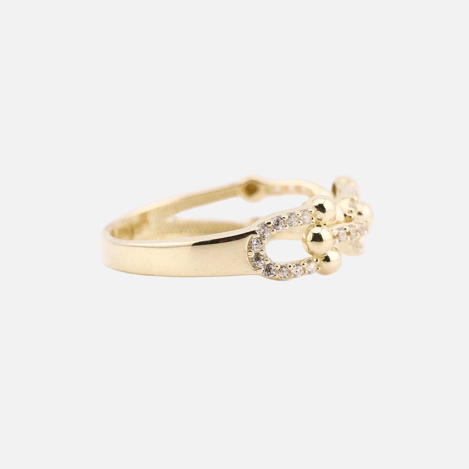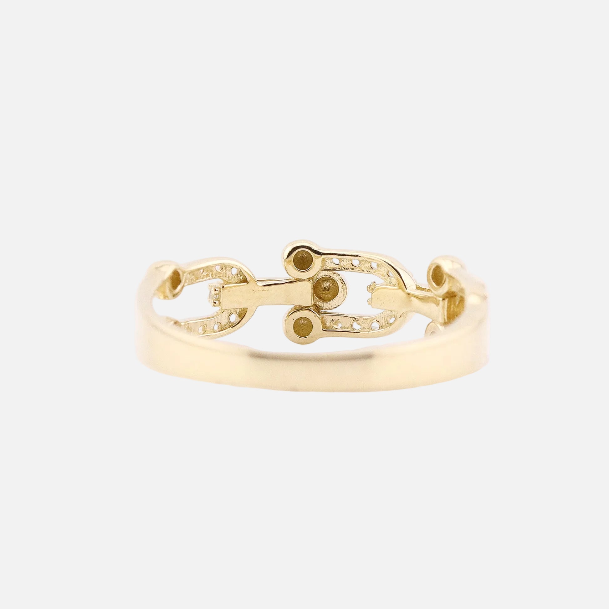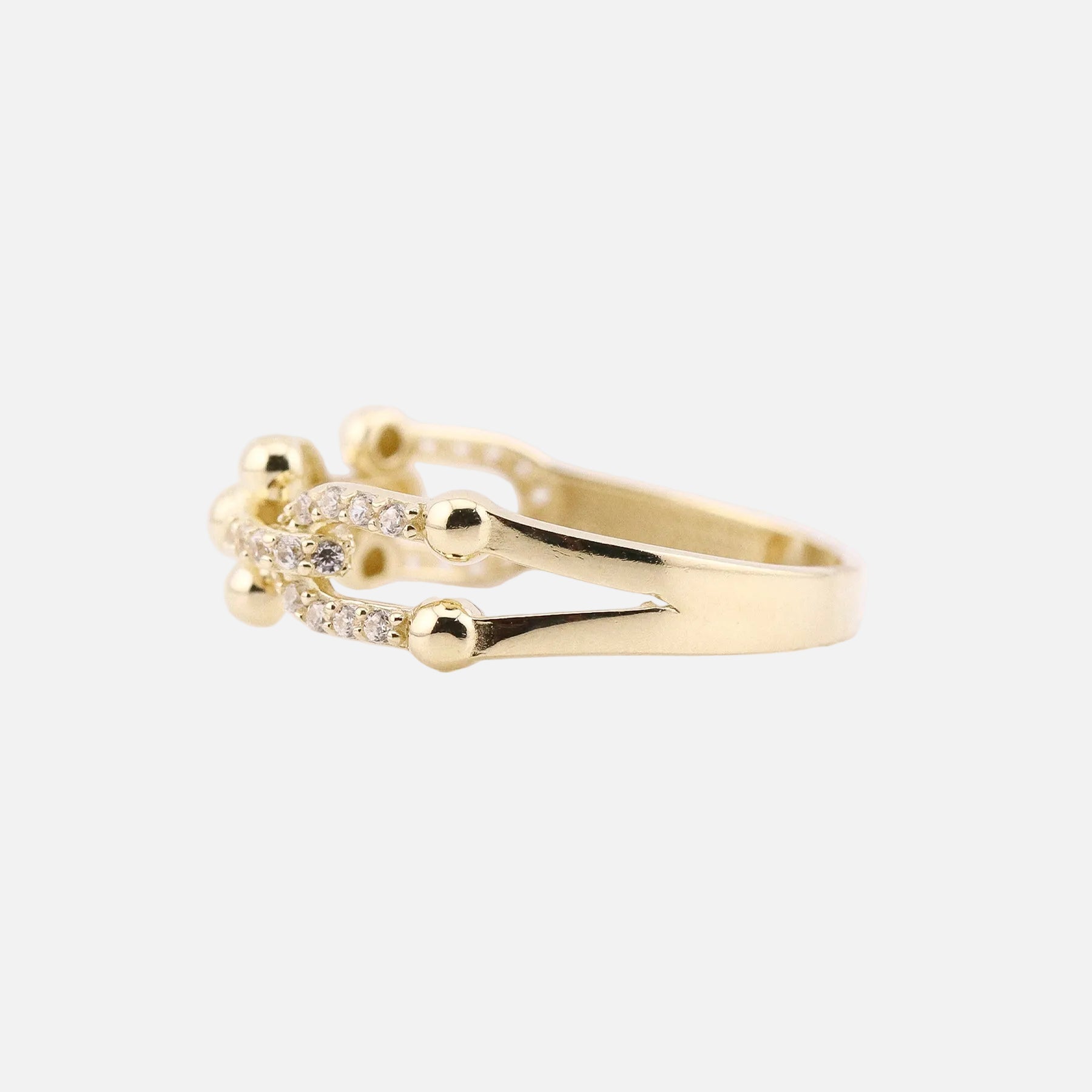 Anillo Eslabón Cadena C/Piedras Blancas en Oro de 10K