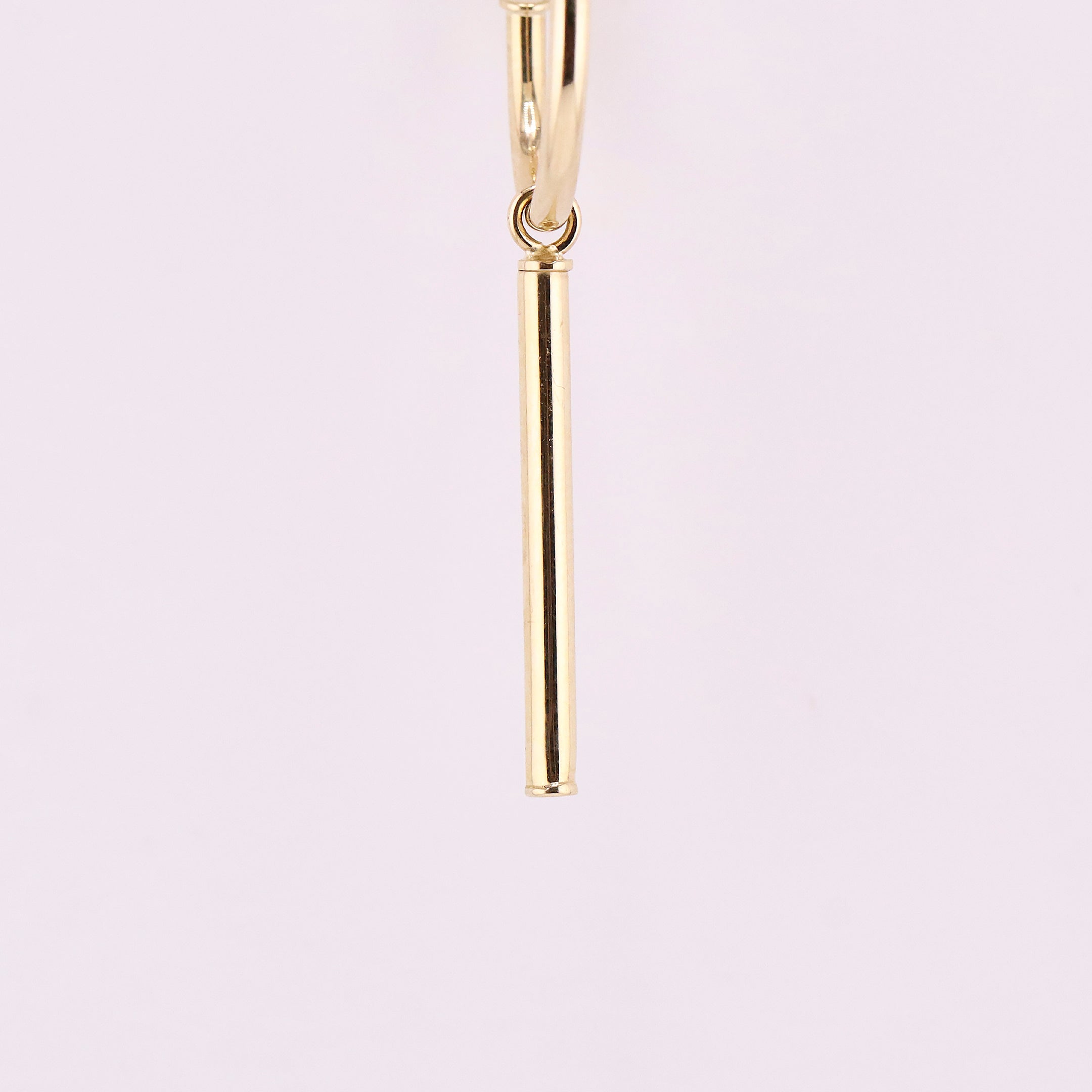 Líneas limpias, elegancia pura. Estos aretes colgantes en oro de 10K destacan por su diseño cilíndrico delgado y pulido, logrando una estética minimalista y atemporal. Su caída ligera estiliza el rostro, convirtiéndolos en el complemento ideal para quienes buscan sofisticación con un toque moderno. Perfectos para usarse solos o como parte de un look en capas, estos aretes se adaptan tanto al día a día como a ocasiones especiales.