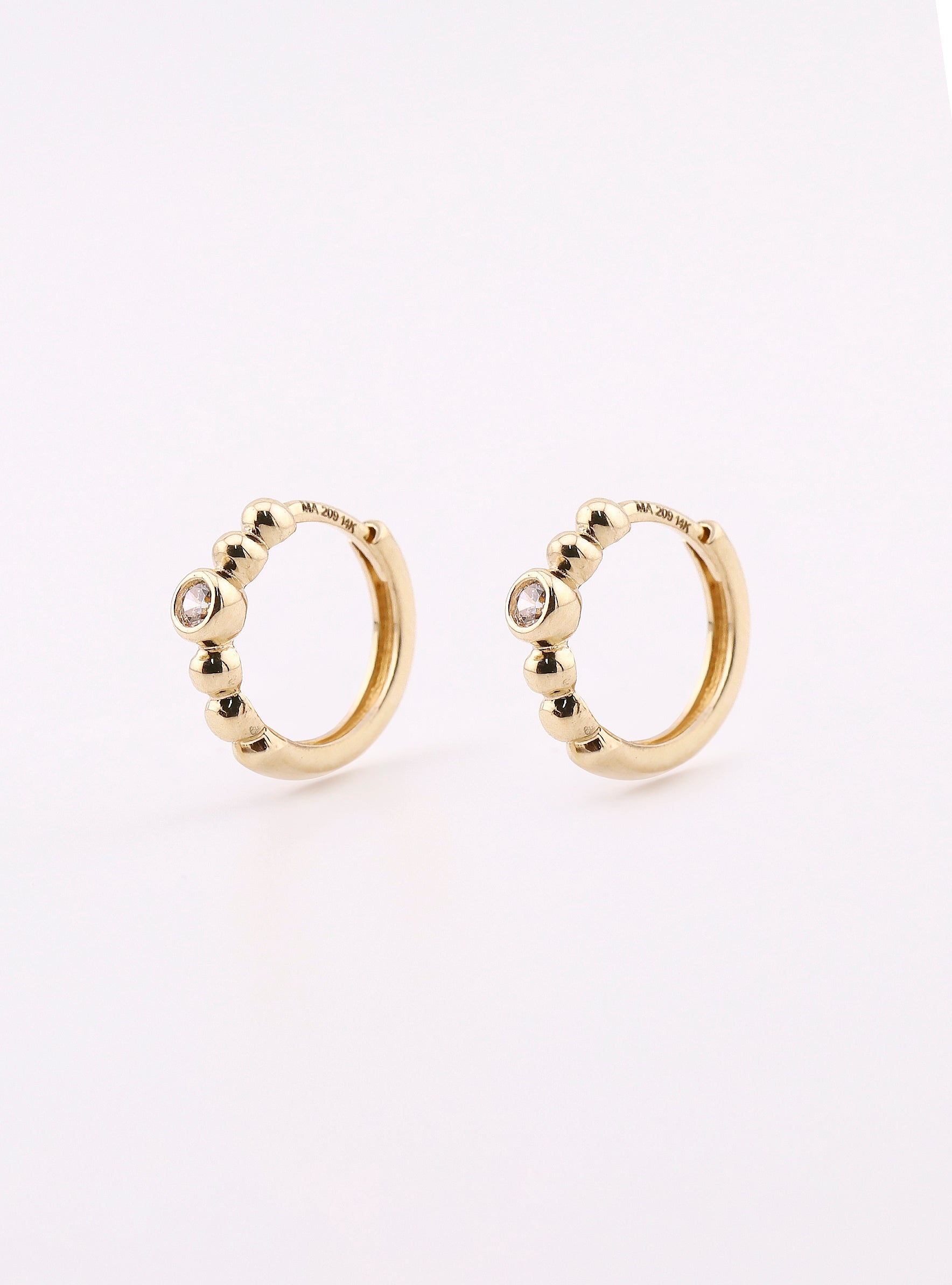 Aretes de Oro Huggies Borlas con Piedra de 14K