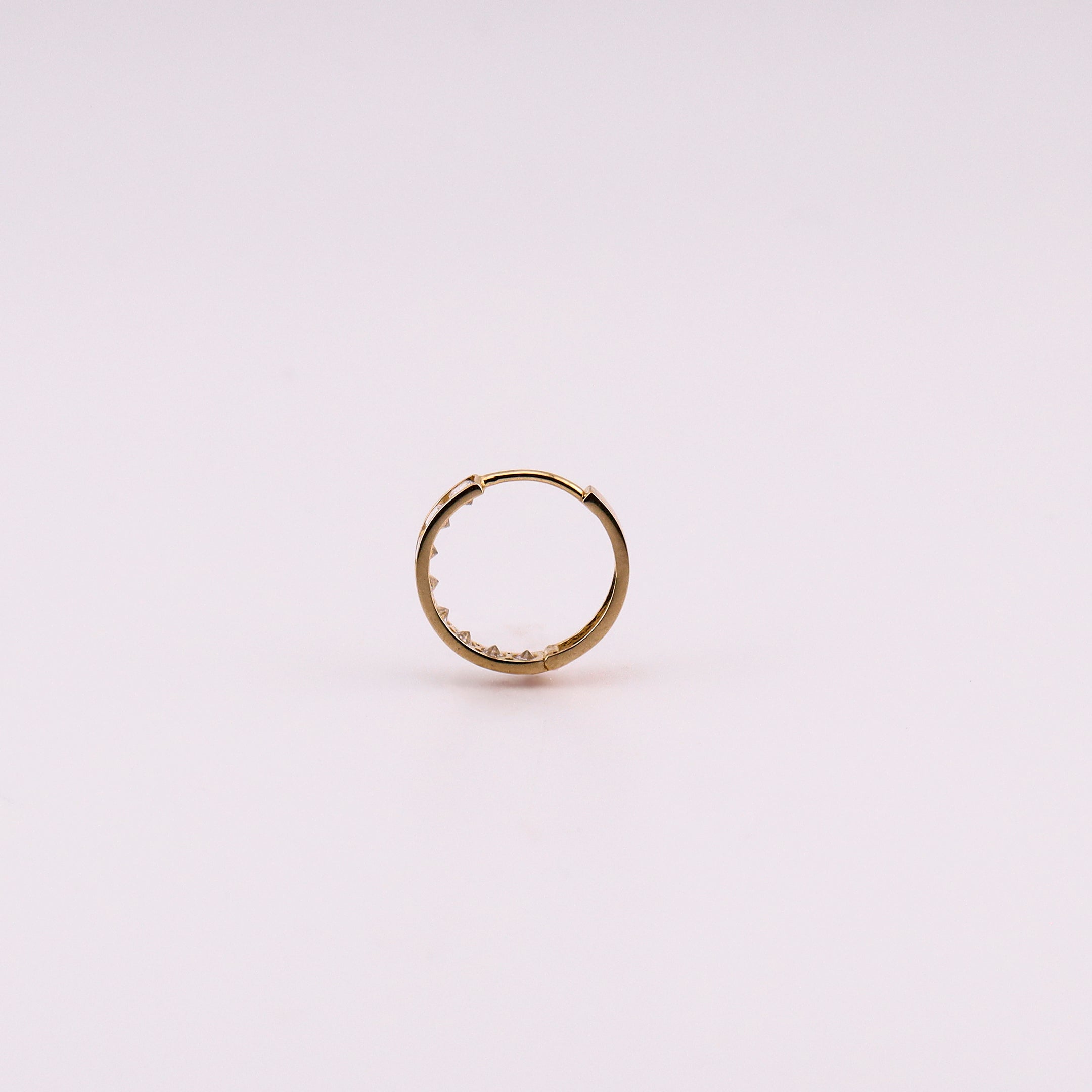Aretes Huggies Baguette C/Piedras Blancas en Oro de 14K