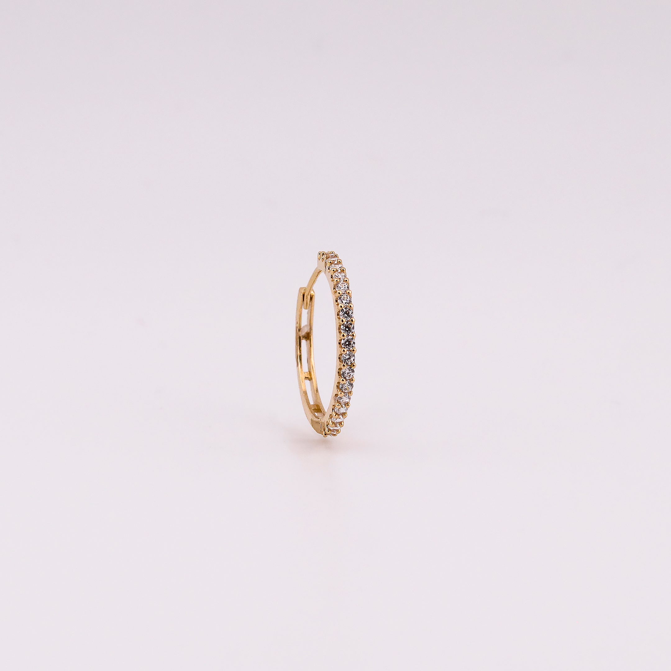 Aretes Huggies C/Piedras Blancas en Oro de 10K