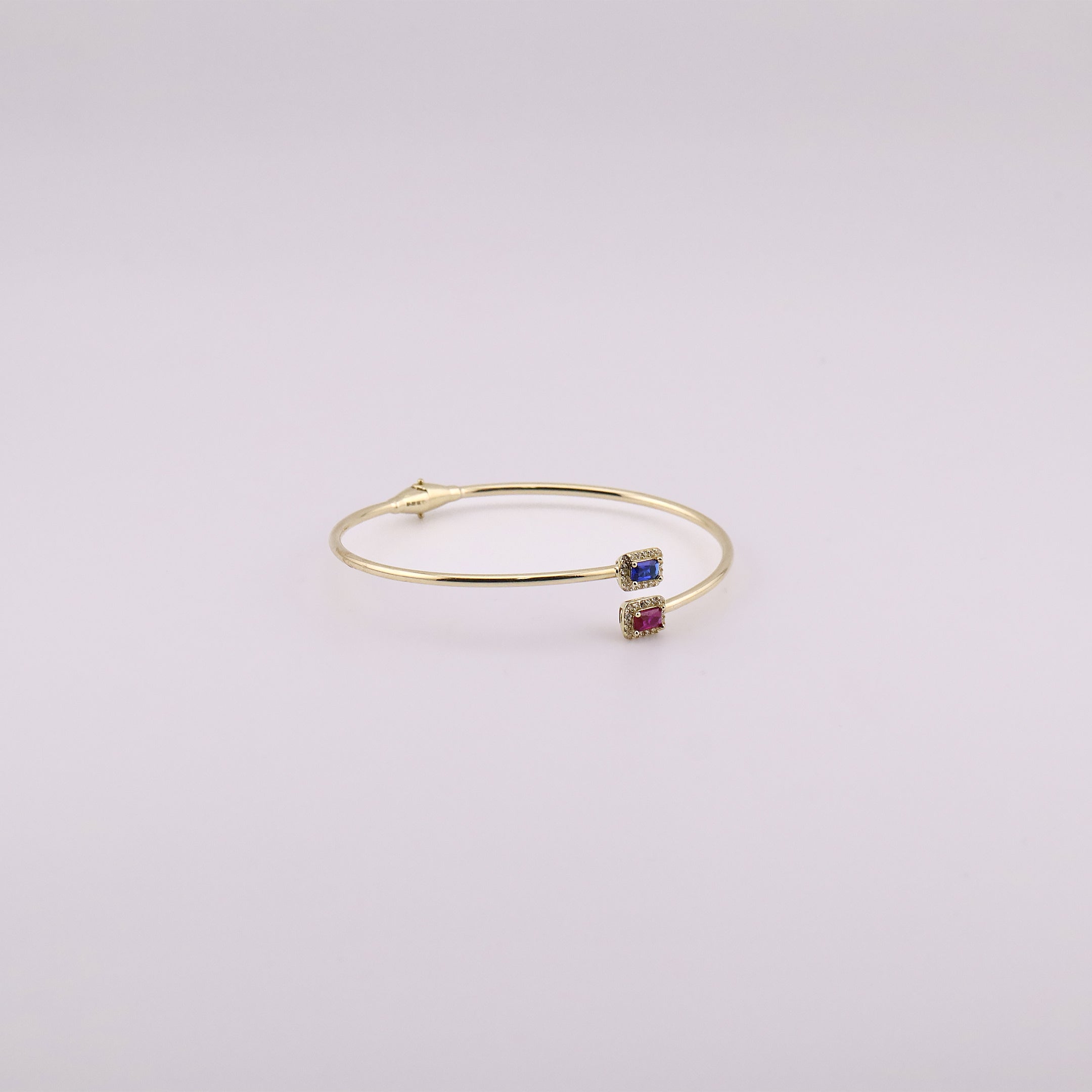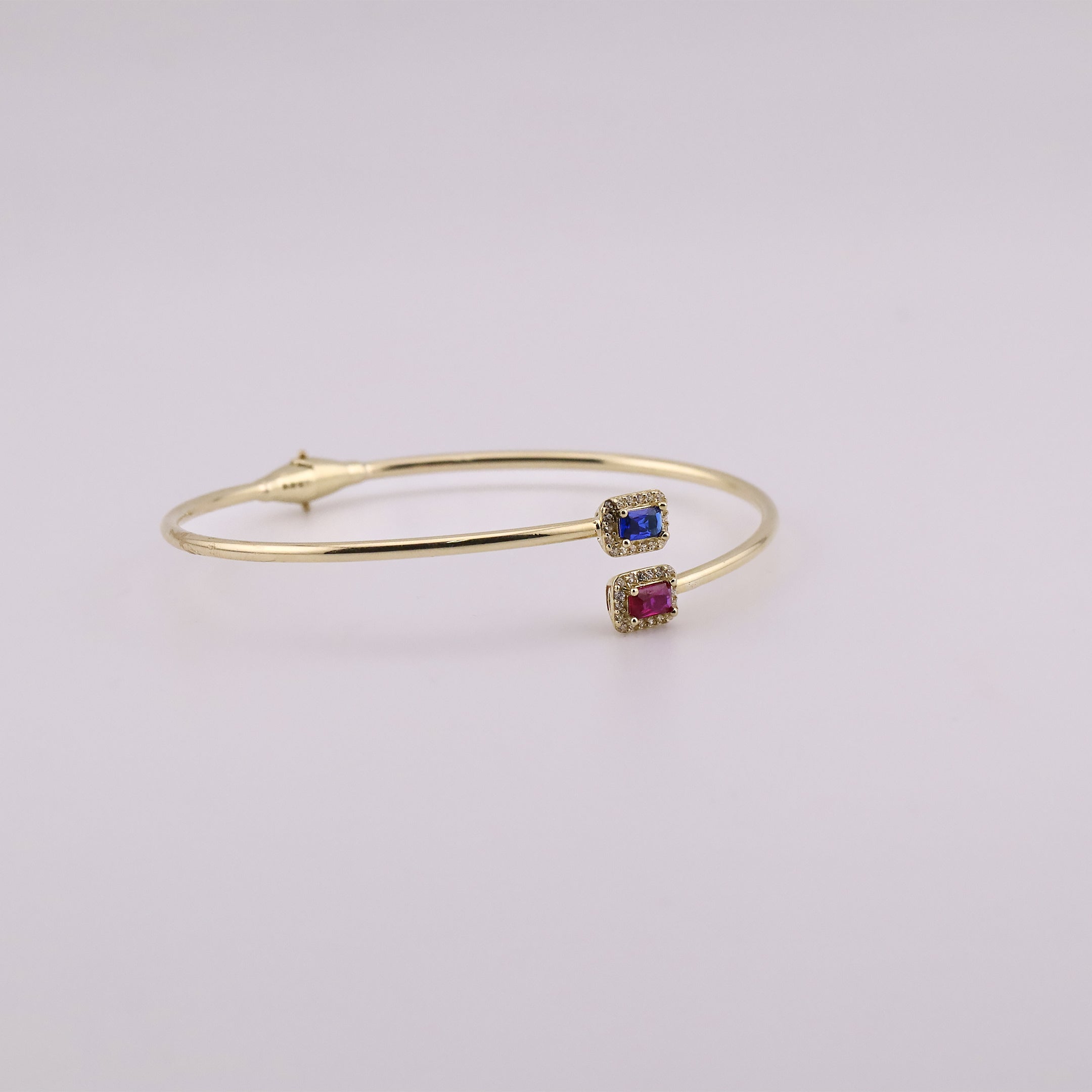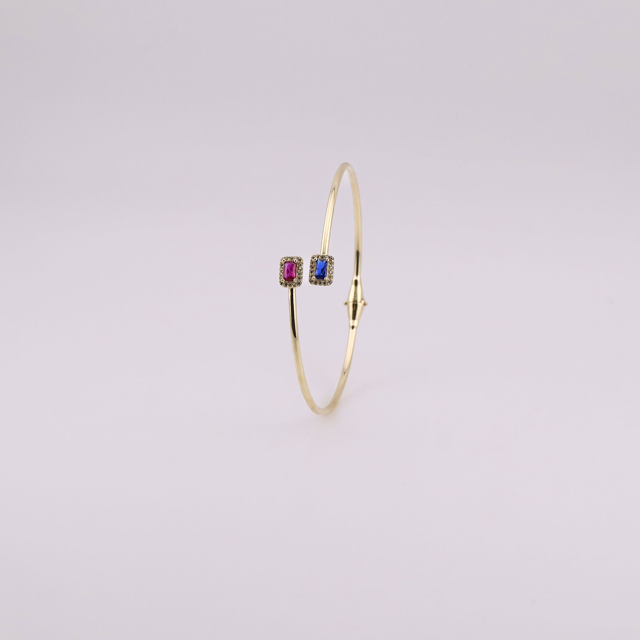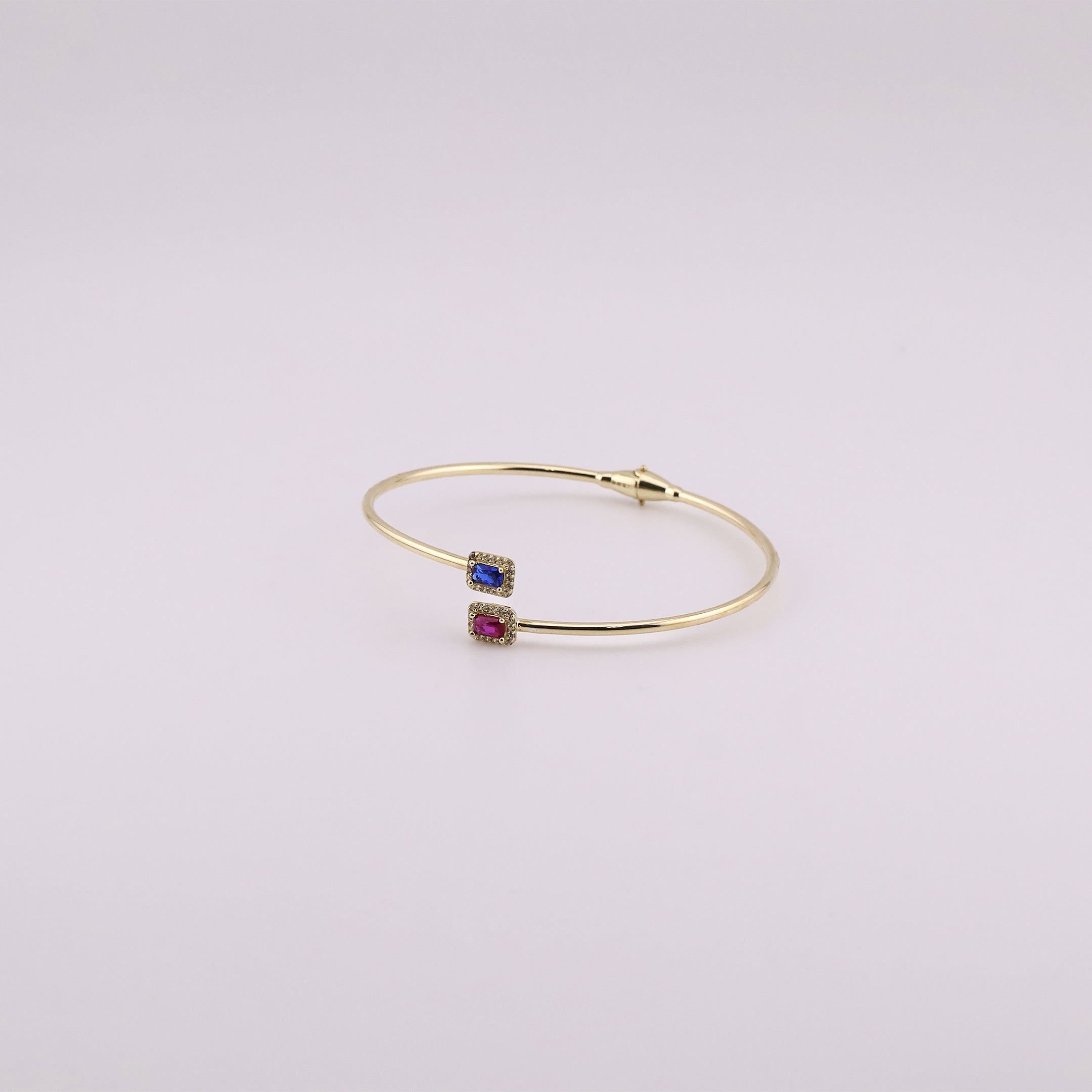 ¡Luce elegante y sofisticada con nuestro brazalete de oro de 10K con hermosas piedras en tonos rosa y azul! Hecho de oro amarillo de alta calidad, este brazalete es perfecto para cualquier ocasión especial. ¡Añade un toque de color a tu atuendo y brilla con estilo!