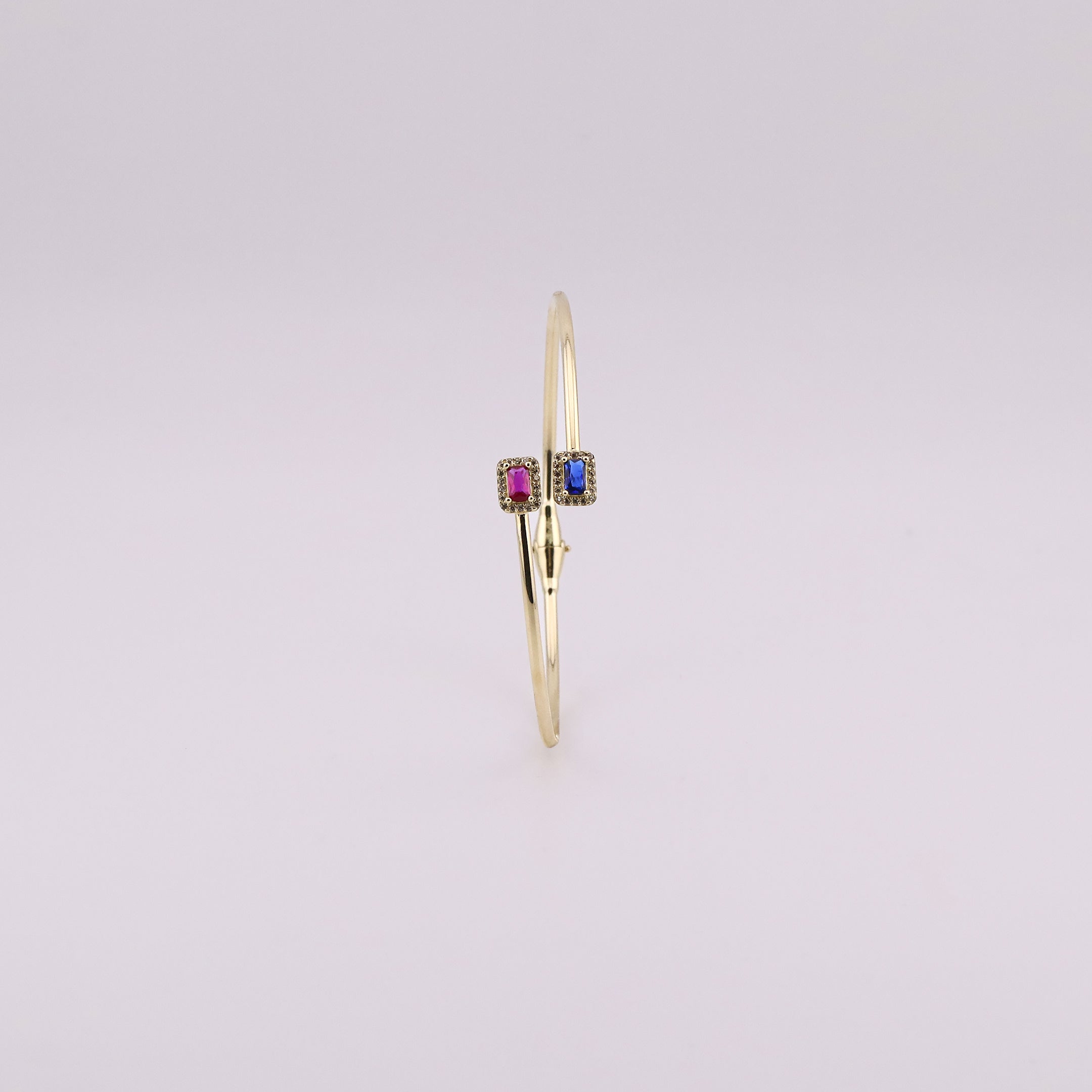 Brazalete de Oro Con Piedra Rosa y Azul de 10K