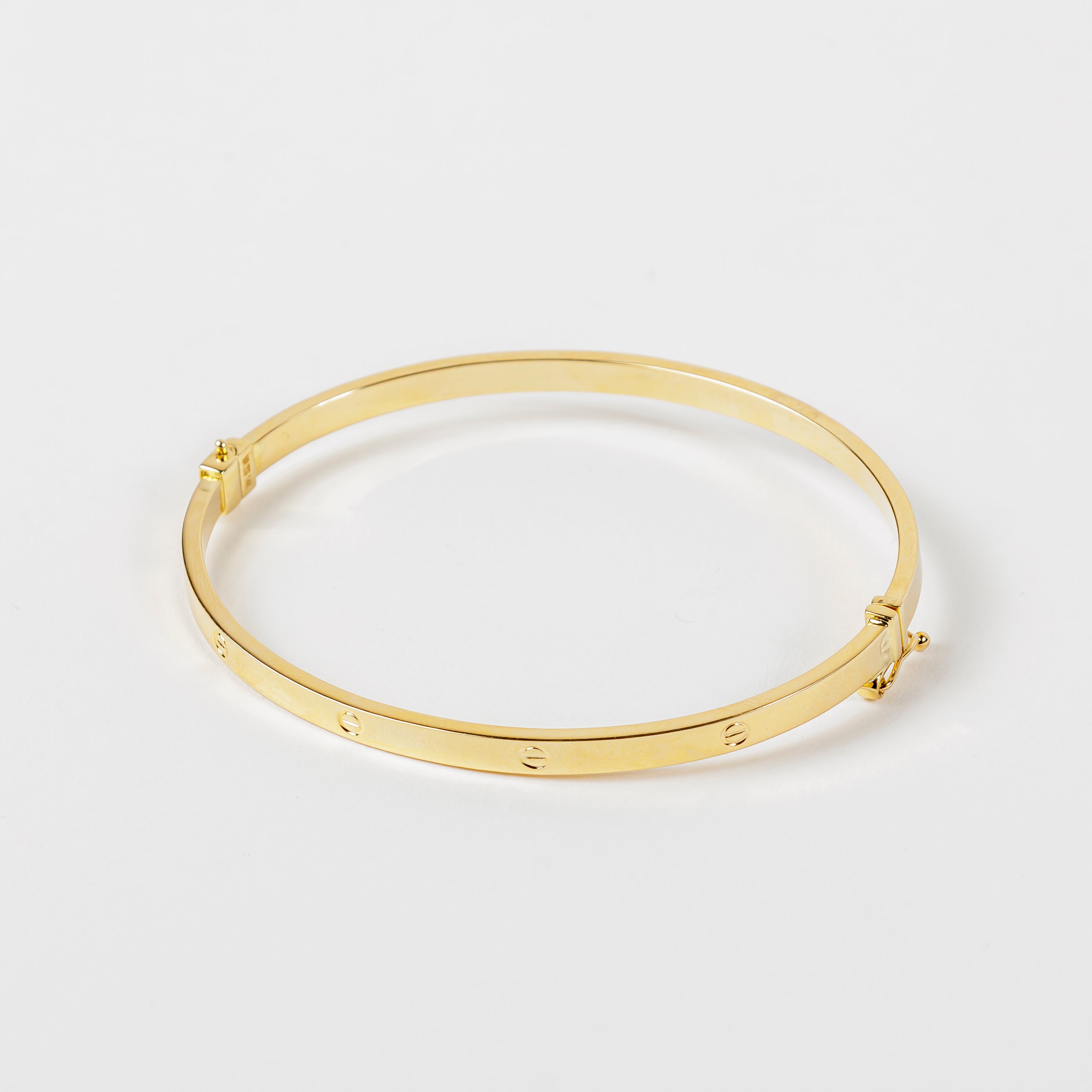 ¡Realza tu estilo con el brazalete en oro de 14K! Hecho de oro amarillo de alta calidad y con un diseño elegante y clásico, este brazalete añadirá un toque de lujo a cualquier atuendo. Perfecto para cualquier ocasión y un gran regalo para esa persona especial. ¡Haz una declaración de moda con este brazalete de oro!