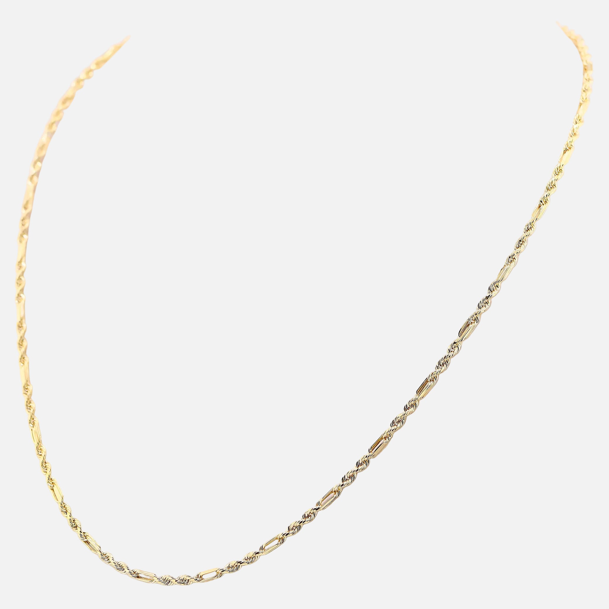 Cadena Figaro de Oro Amarillo 14K que combina elegancia clásica con durabilidad excepcional. Este diseño icónico presenta eslabones alternados que crean un patrón visual cautivado. Elaborada en oro amarillo de 14k, garantiza resistencia y brillo duradero. Una inversión en joyería versátil que trasciende tendencias y se adapta a cualquier ocasión, desde lo casual hasta lo formal. Pieza atemporal que refleja tu buen gusto y sofisticación.