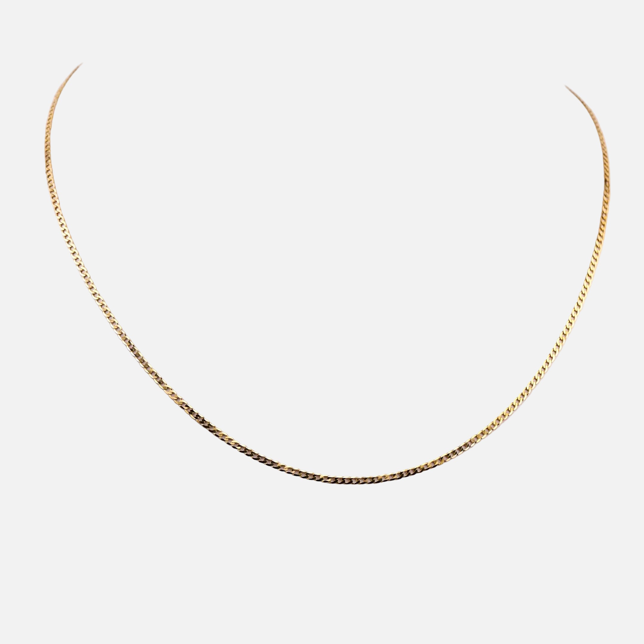 Esta cadena de eslabones con tejido delicado en oro de 14K combina elegancia y durabilidad, ideal para realzar cualquier estilo. Su brillo auténtico y diseño clásico aseguran un toque sofisticado, perfecto para uso diario o ocasiones especiales. Añade un detalle de lujo que complementa tu personalidad con esta prenda atemporal.