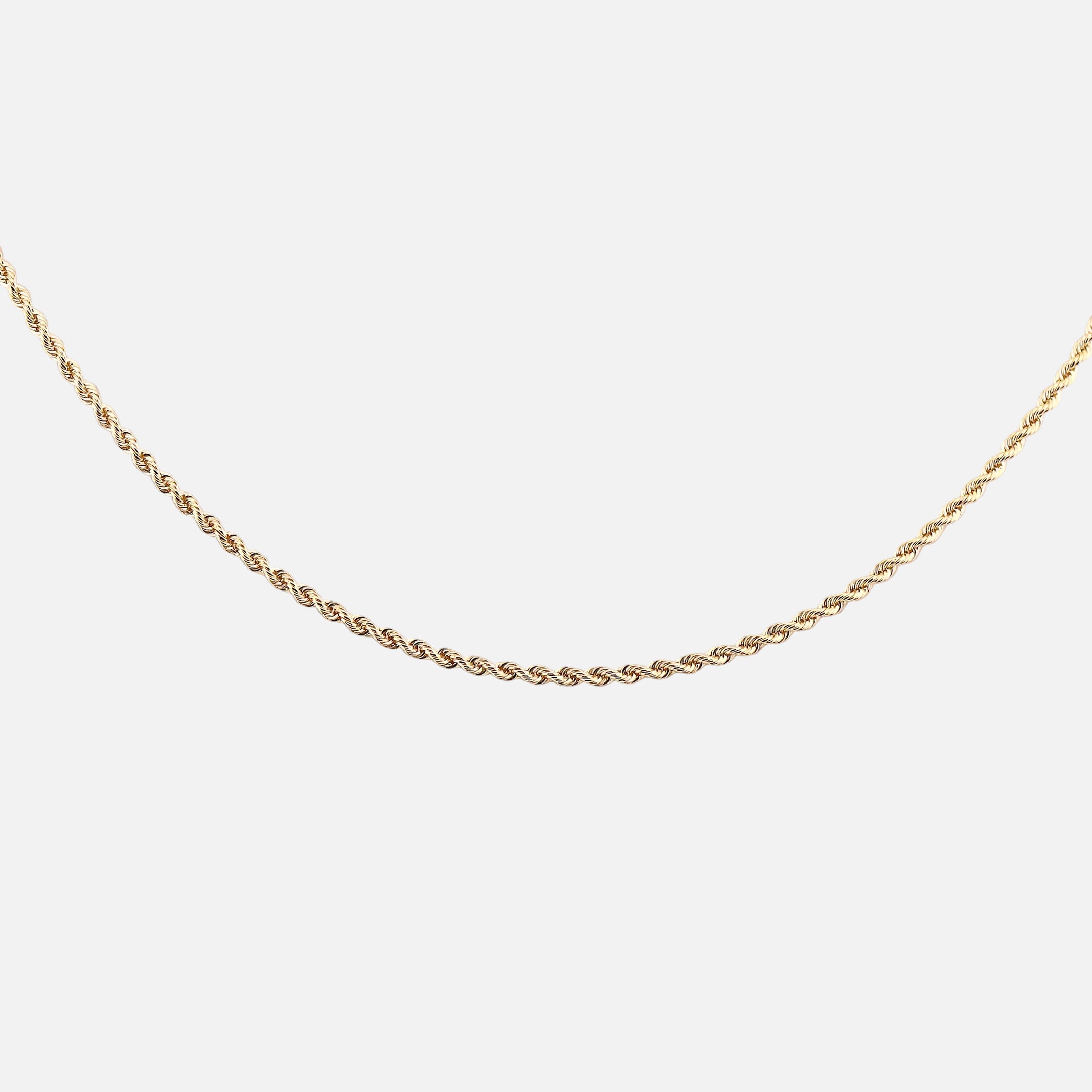 Cadena Tejido Torzal en Oro de 14K Luce elegancia atemporal con esta cadena de oro amarillo de 14 quilates, elaborada con la técnica tradicional del tejido torzal. Su diseño entrelazado crea un patrón visual cautivador que refleja luz de manera dinámica, realzando cualquier atuendo. El oro de 14K garantiza durabilidad y resistencia sin comprometer su brillo natural. Perfecta como pieza versátil para usar sola o como base para tus colgantes favoritos.
