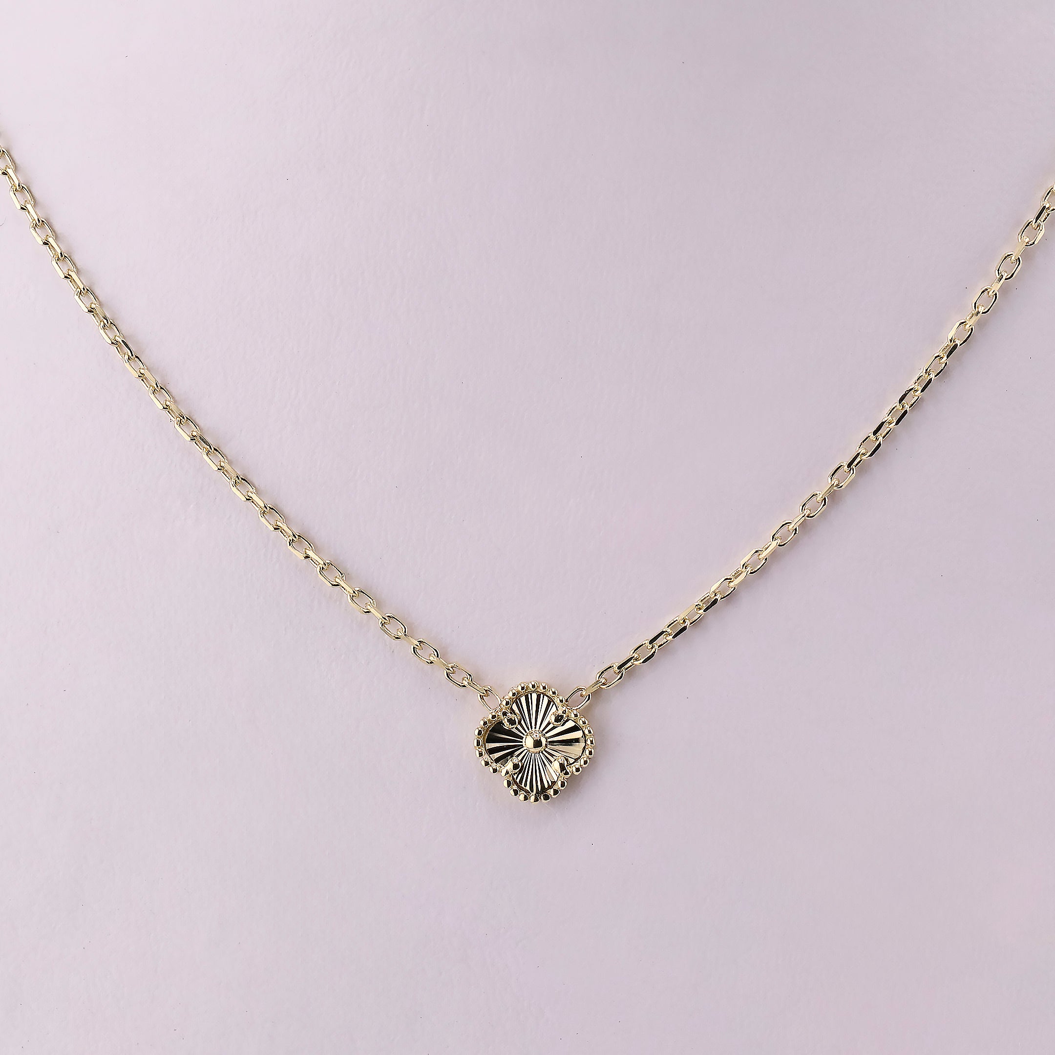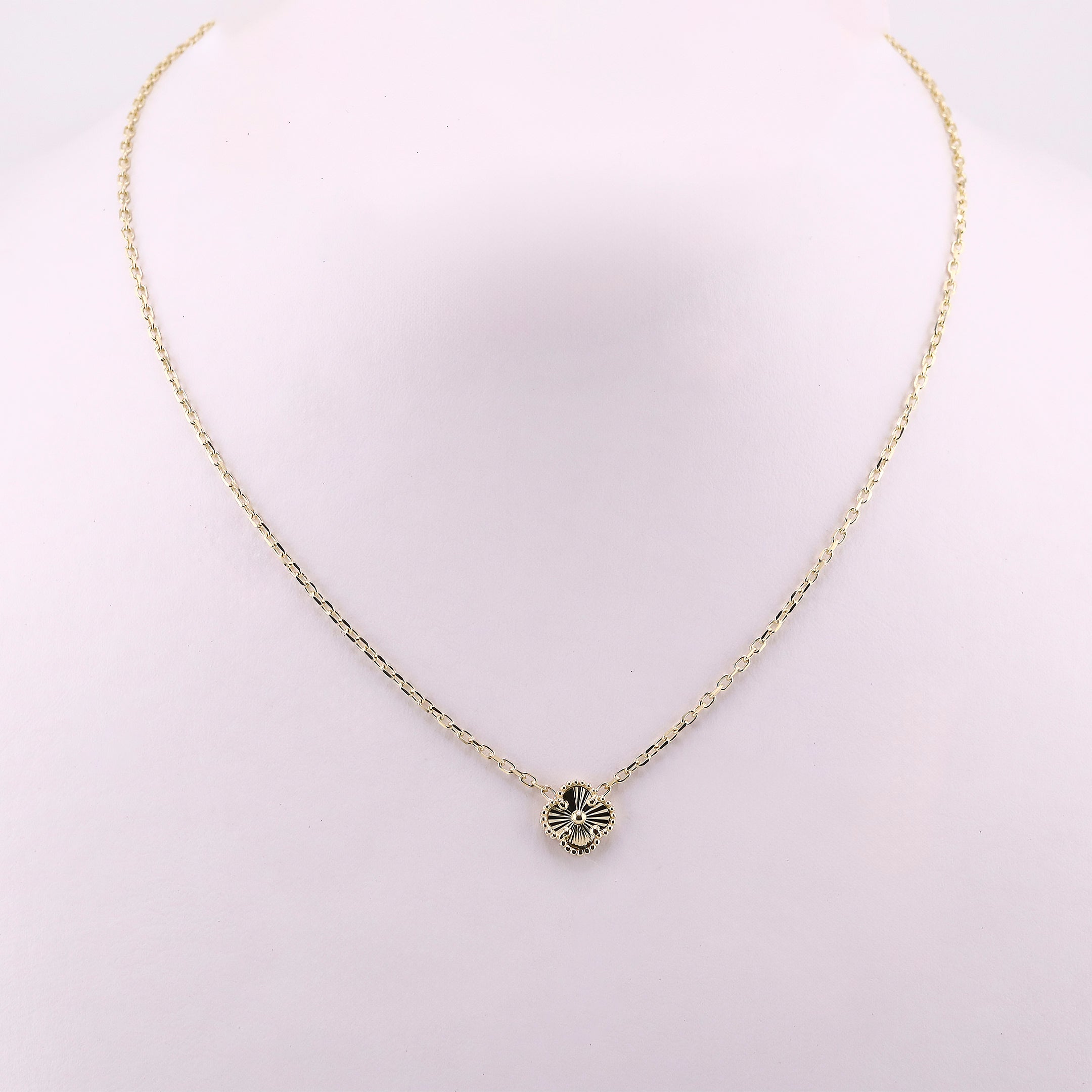 Esta gargantilla dije trébol en oro amarillo de 10K combina diseño elegante y calidad excepcional. Su acabado brillante y delicado estilo realzan tu look con un toque sofisticado y moderno. Perfecta para cualquier ocasión, esta pieza versátil es un símbolo de buen gusto y distinción que no puede faltar en tu colección de joyas.