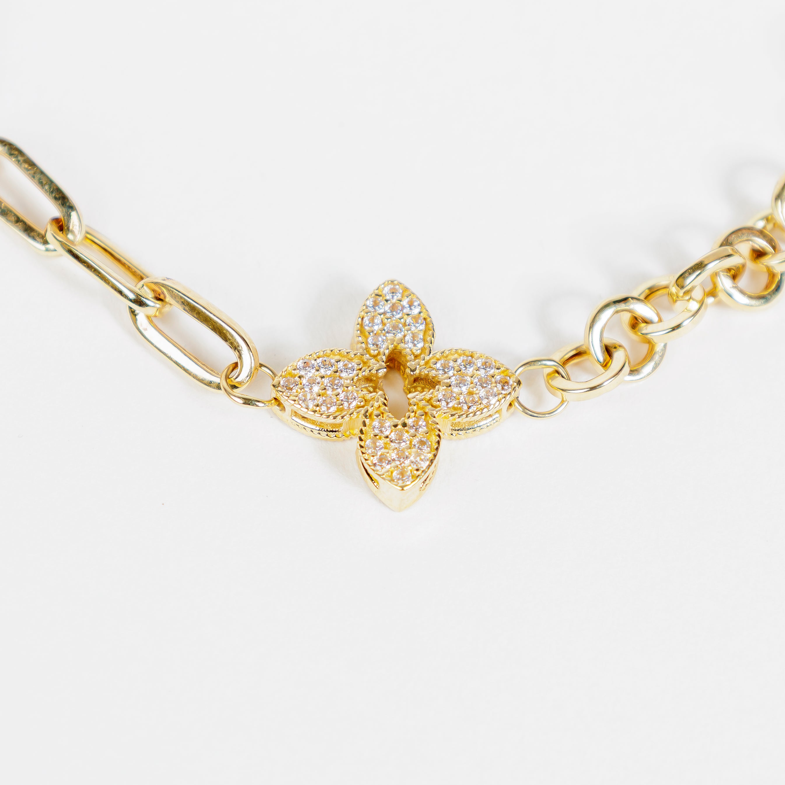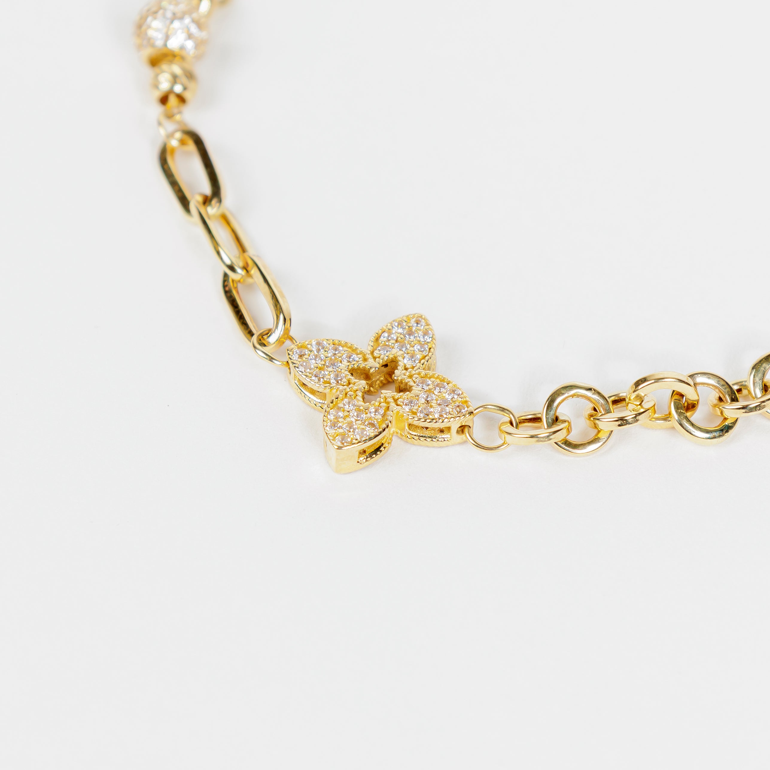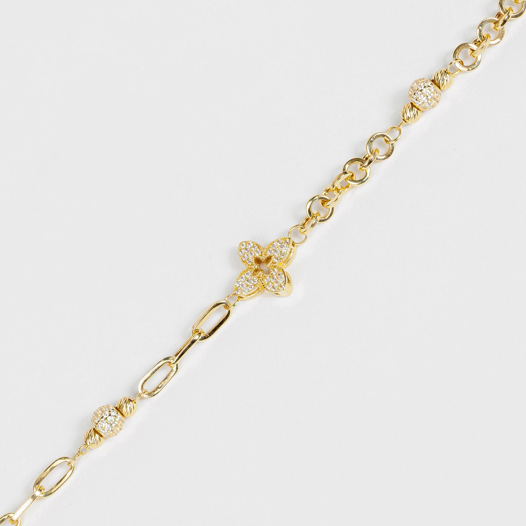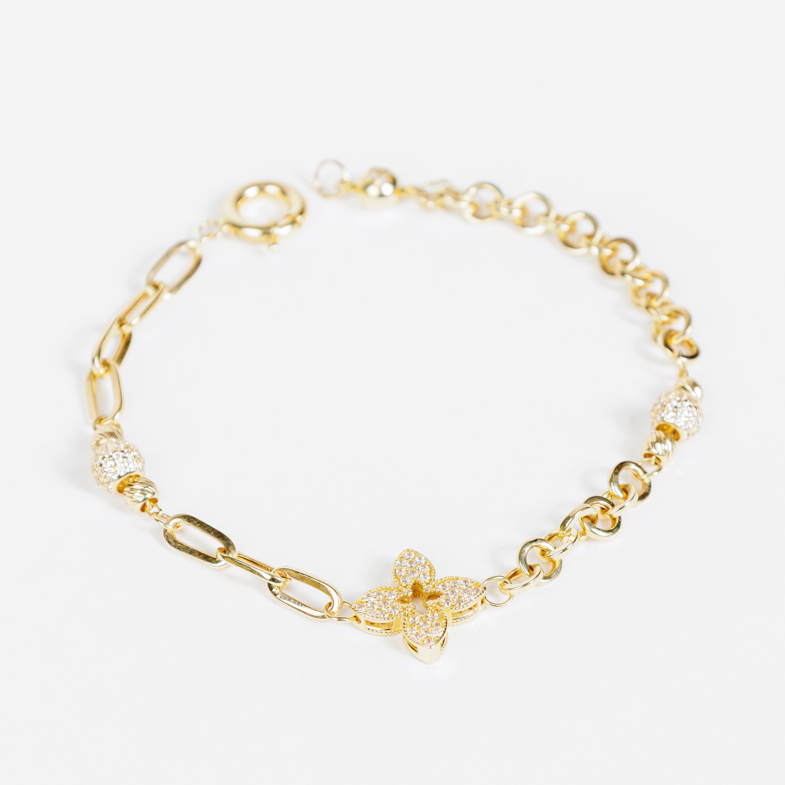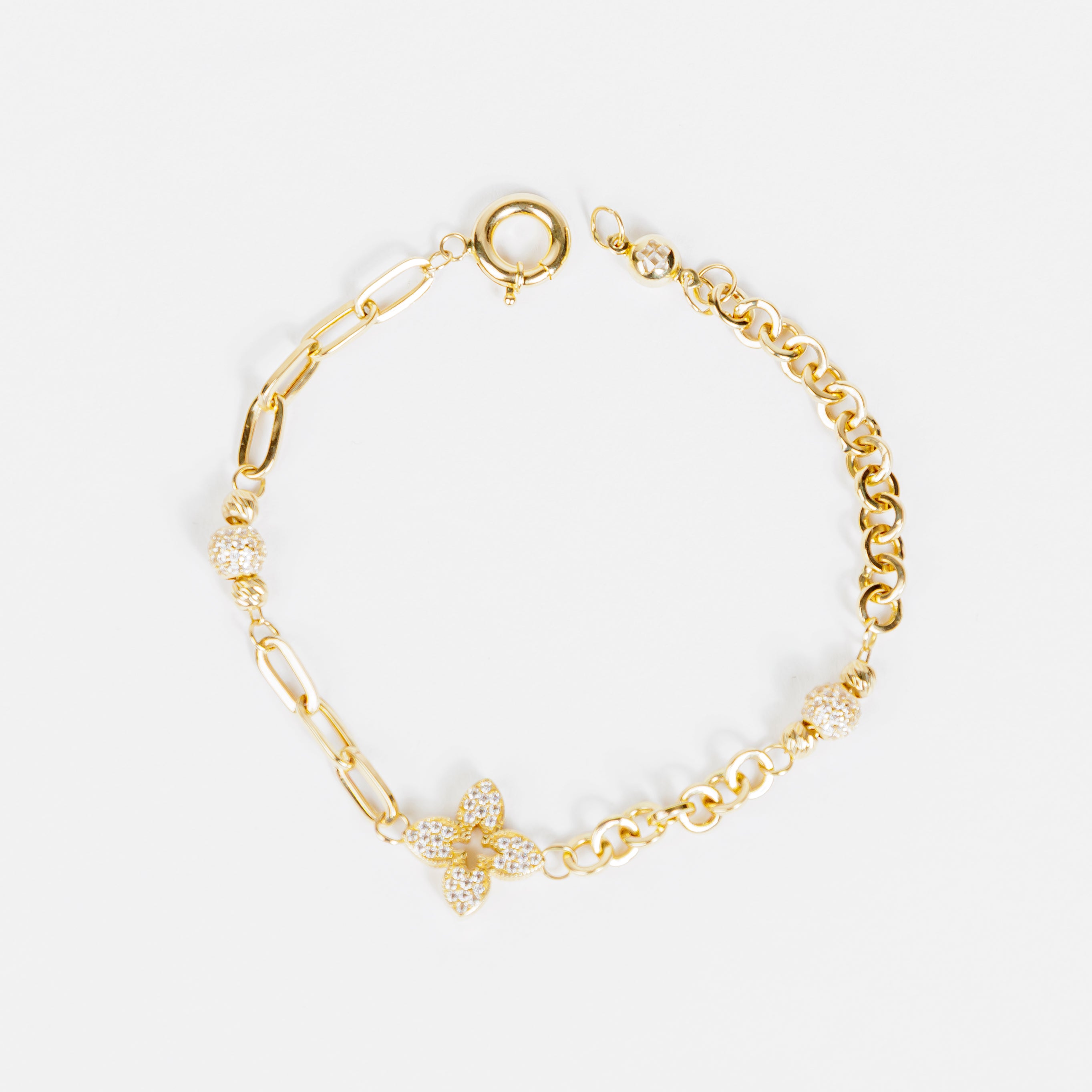 Pulsera Dije Flor con Piedras en Oro de 14K