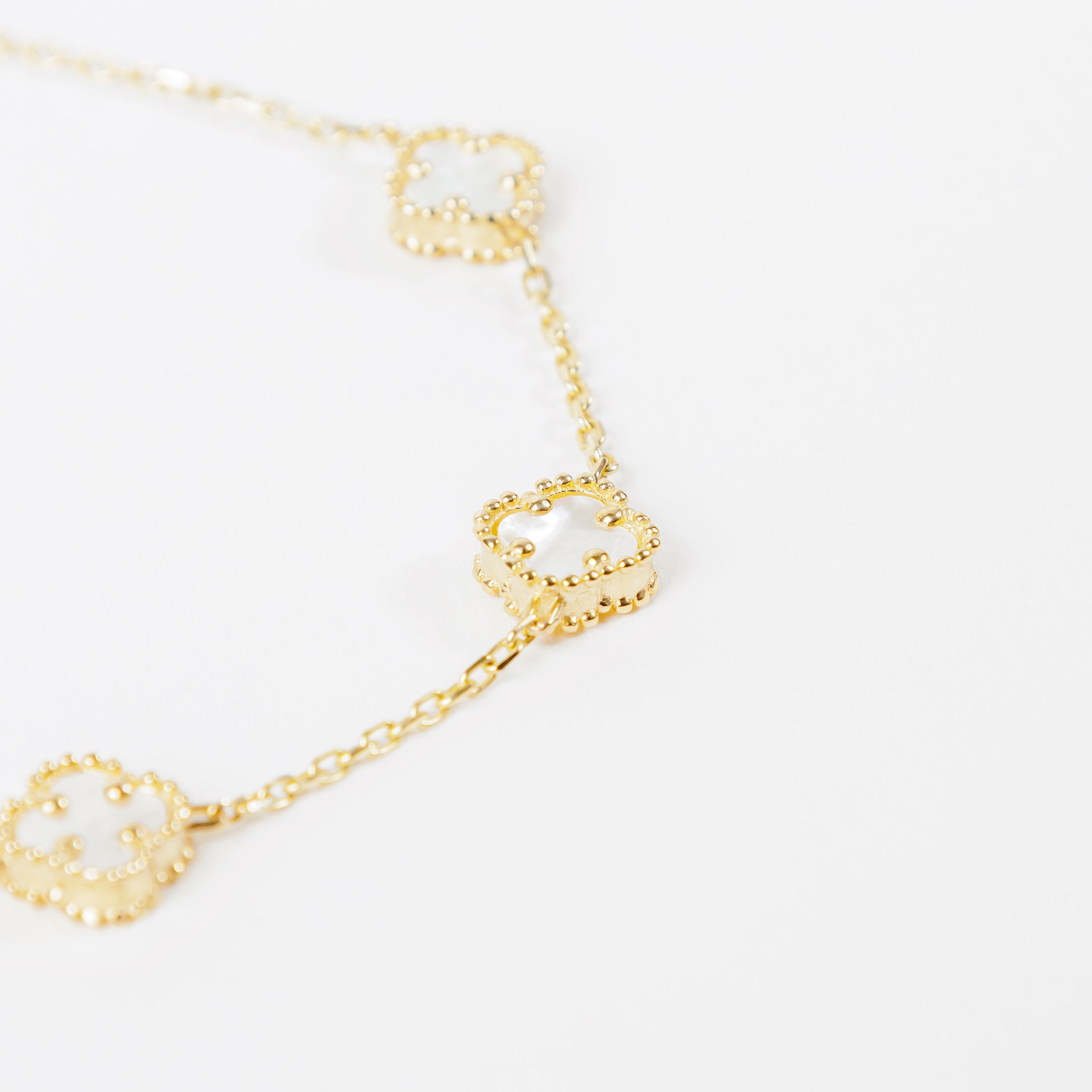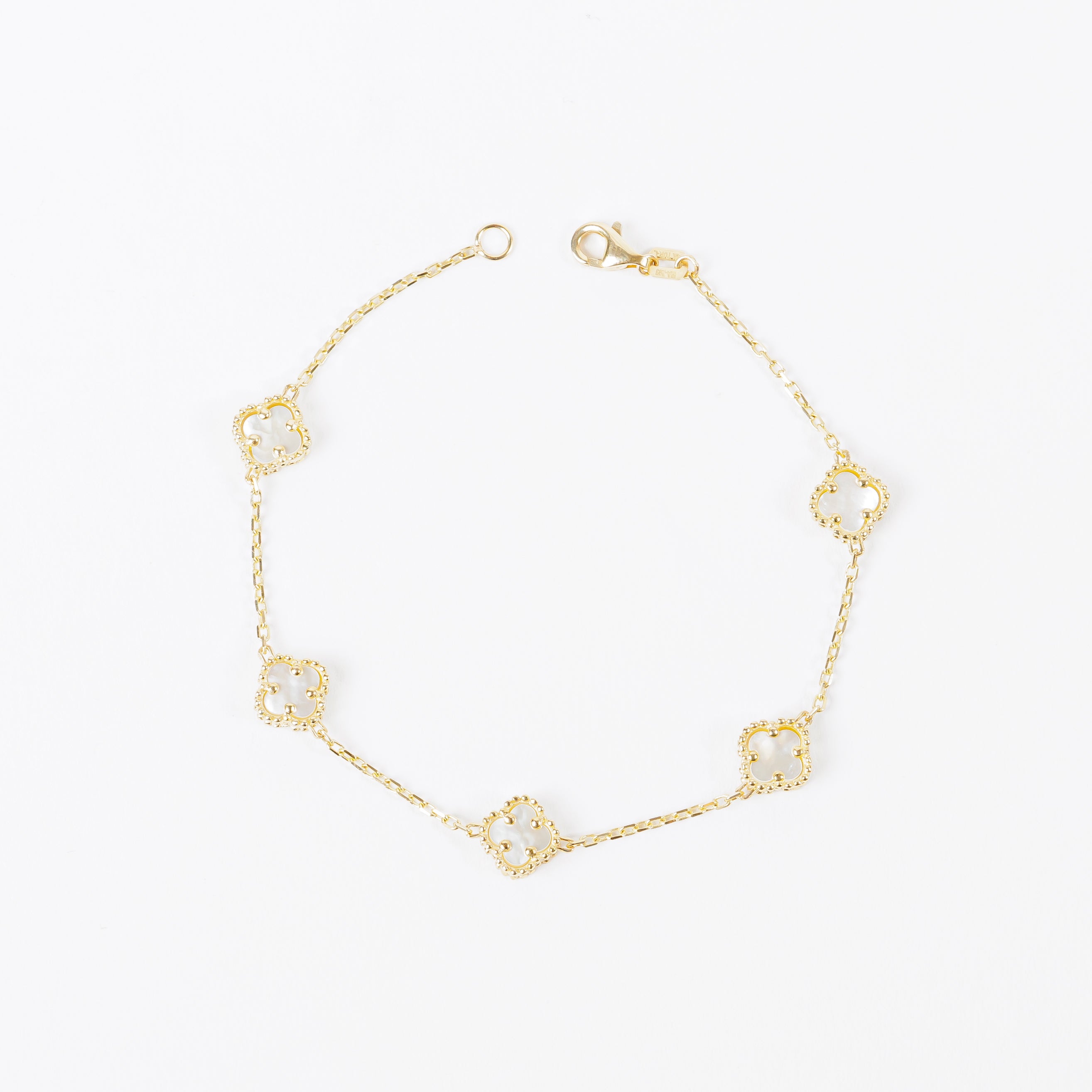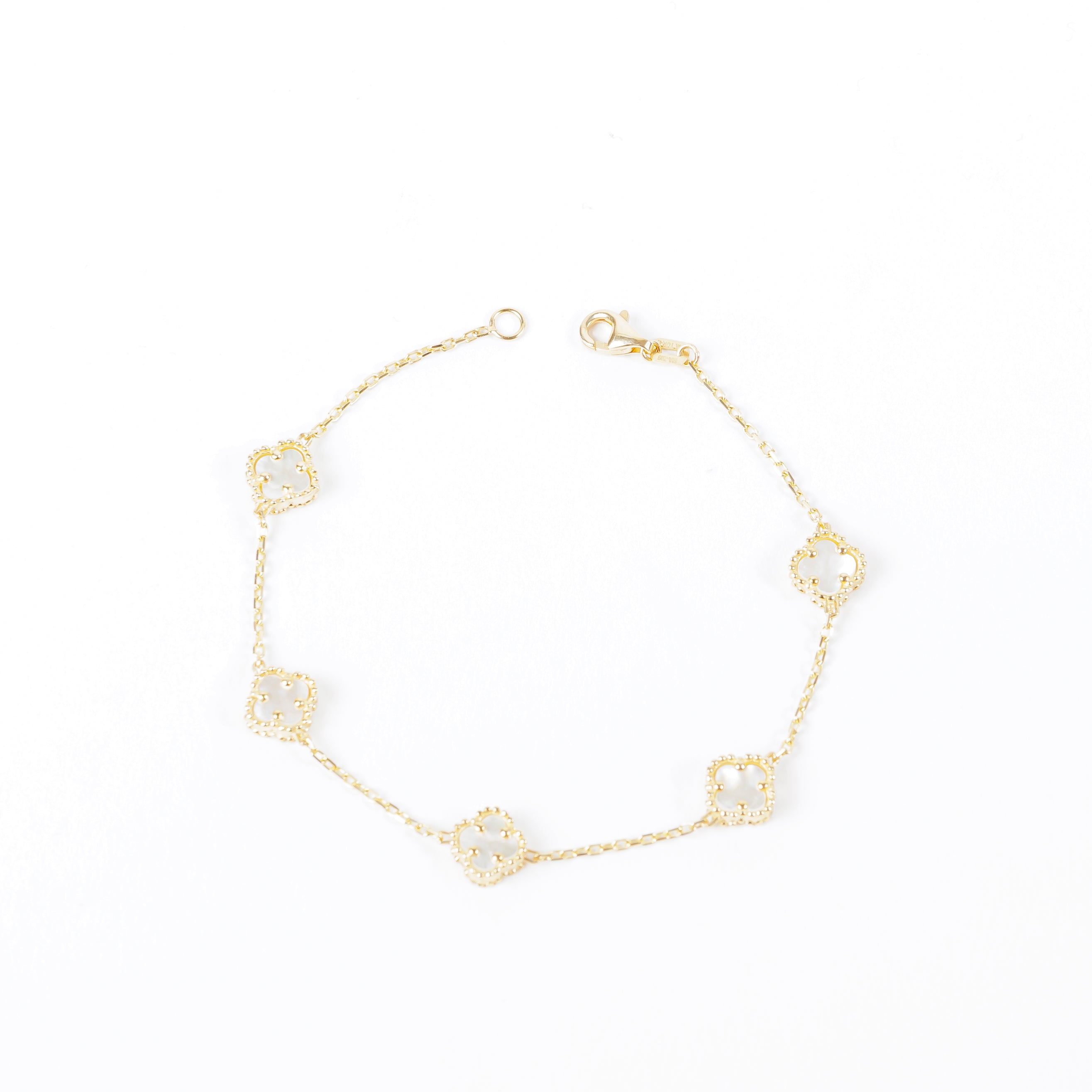 Pulsera Trébol Blanco en Oro de 14K