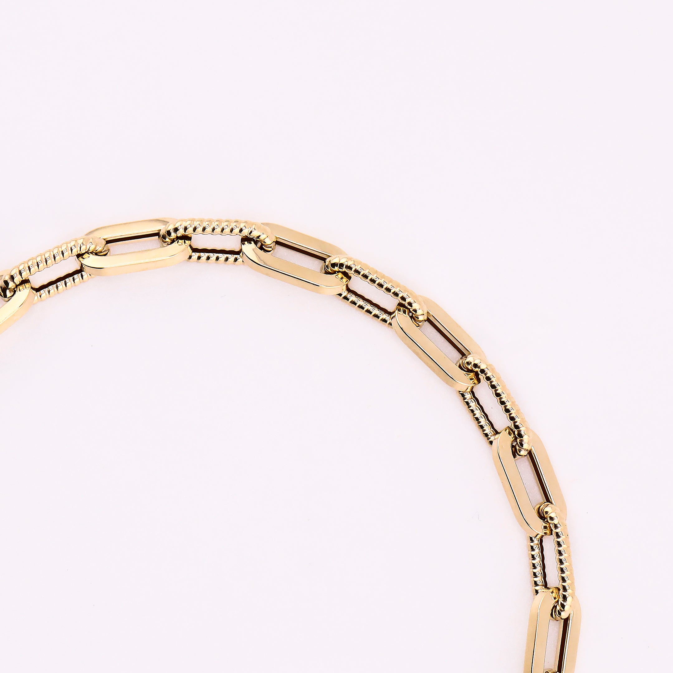 Pulsera Eslabones en Oro de 14K – un clásico atemporal con diseño de eslabones sólidos y brillantes. Perfecta para quienes buscan una joya elegante, resistente y de estilo versátil.