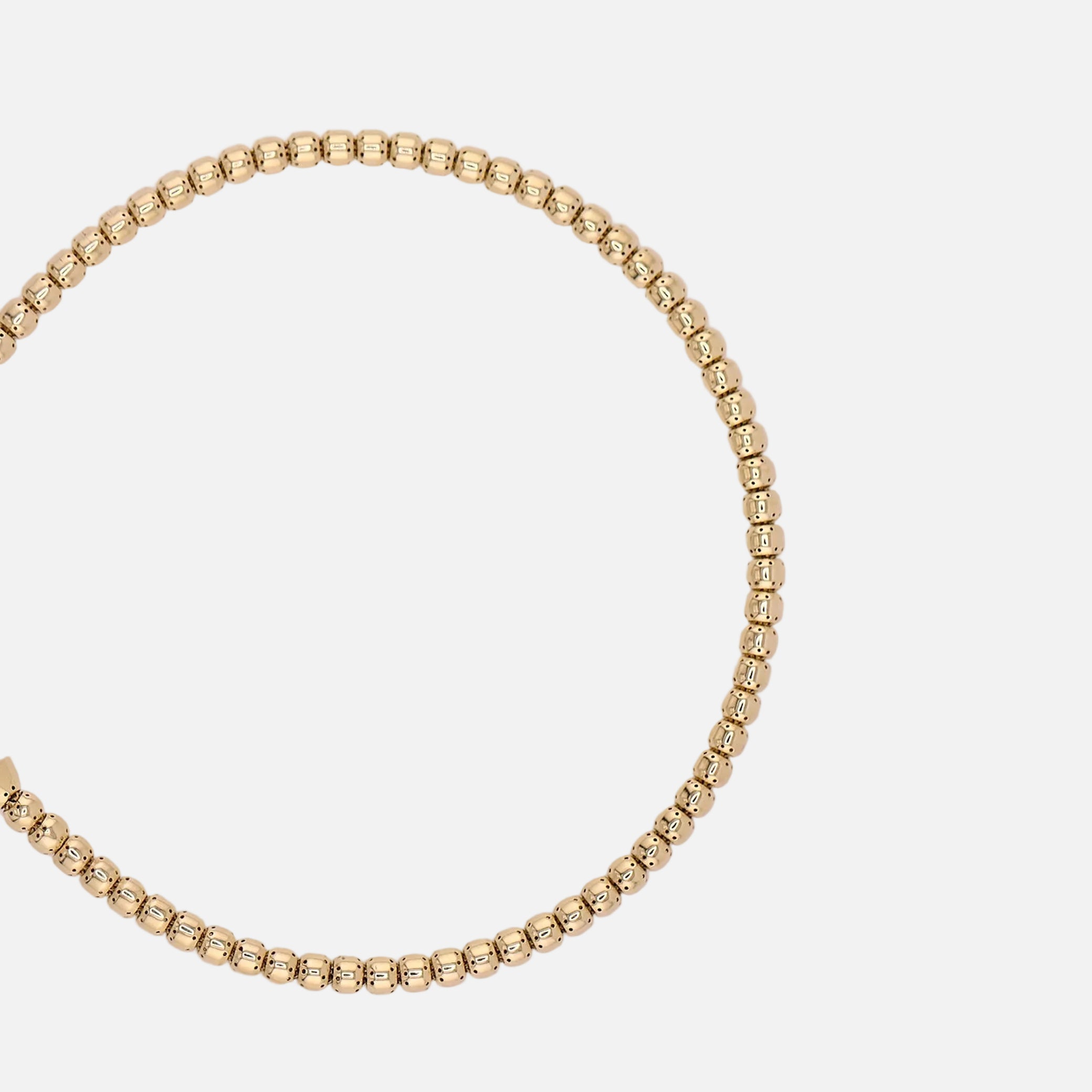 Pulso Monaco Chain Bub en Oro de 14K. La colección Bub aporta una elegancia encantadora con sus eslabones redondeados, similares a borlas. Diseñada para un uso de 360 grados, mantiene su forma fluida y su equilibrio desde cualquier ángulo. Ligera pero duradera, Bub ofrece comodidad, elegancia y carácter alegre.