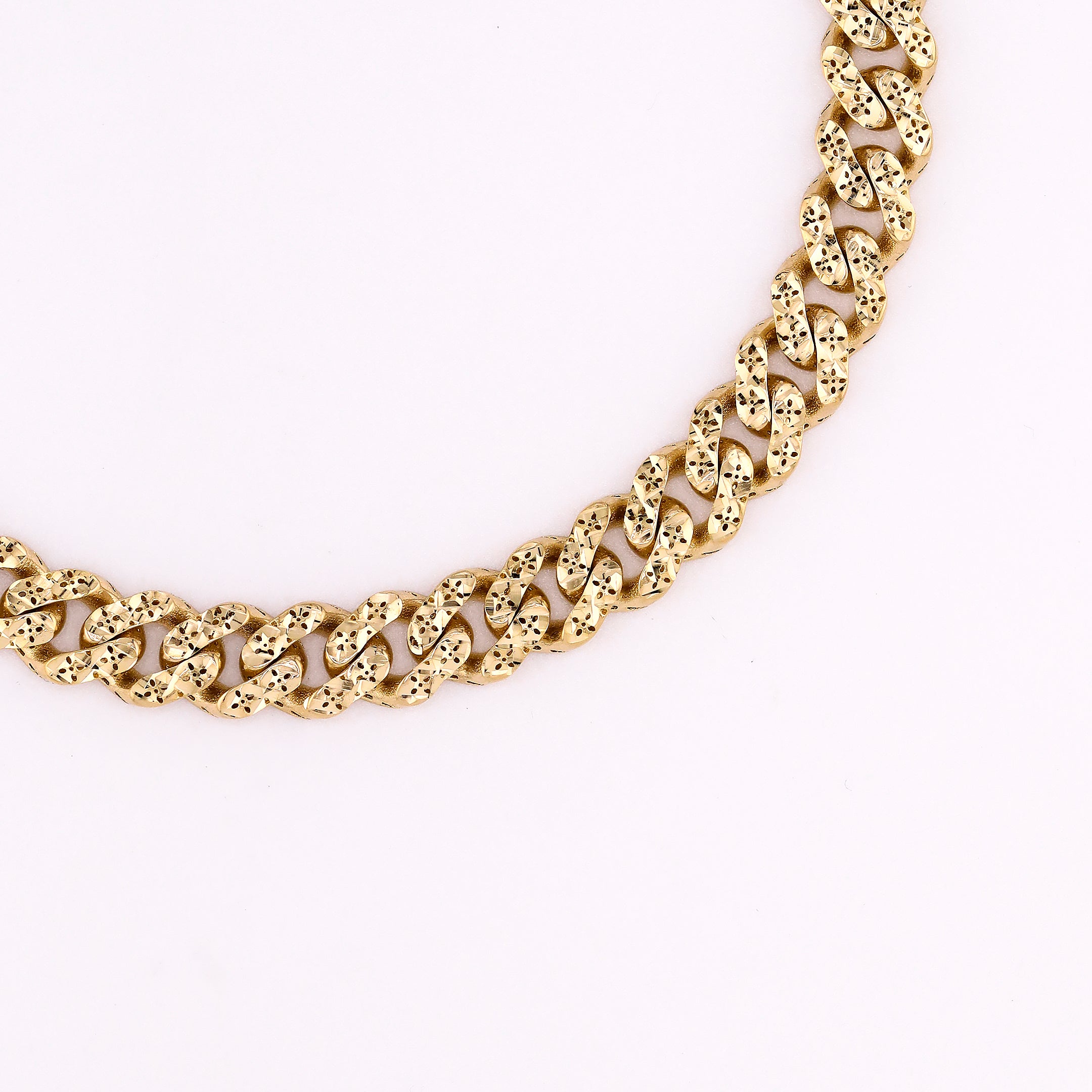 Pulso Monaco Chain en oro amarillo de 10K combina un diseño clásico con la elegancia atemporal del oro. Su acabado impecable y su estructura resistente lo convierten en el accesorio perfecto para realzar cualquier estilo, aportando sofisticación y durabilidad en cada detalle. Ideal para quienes buscan un toque de distinción en su look diario.